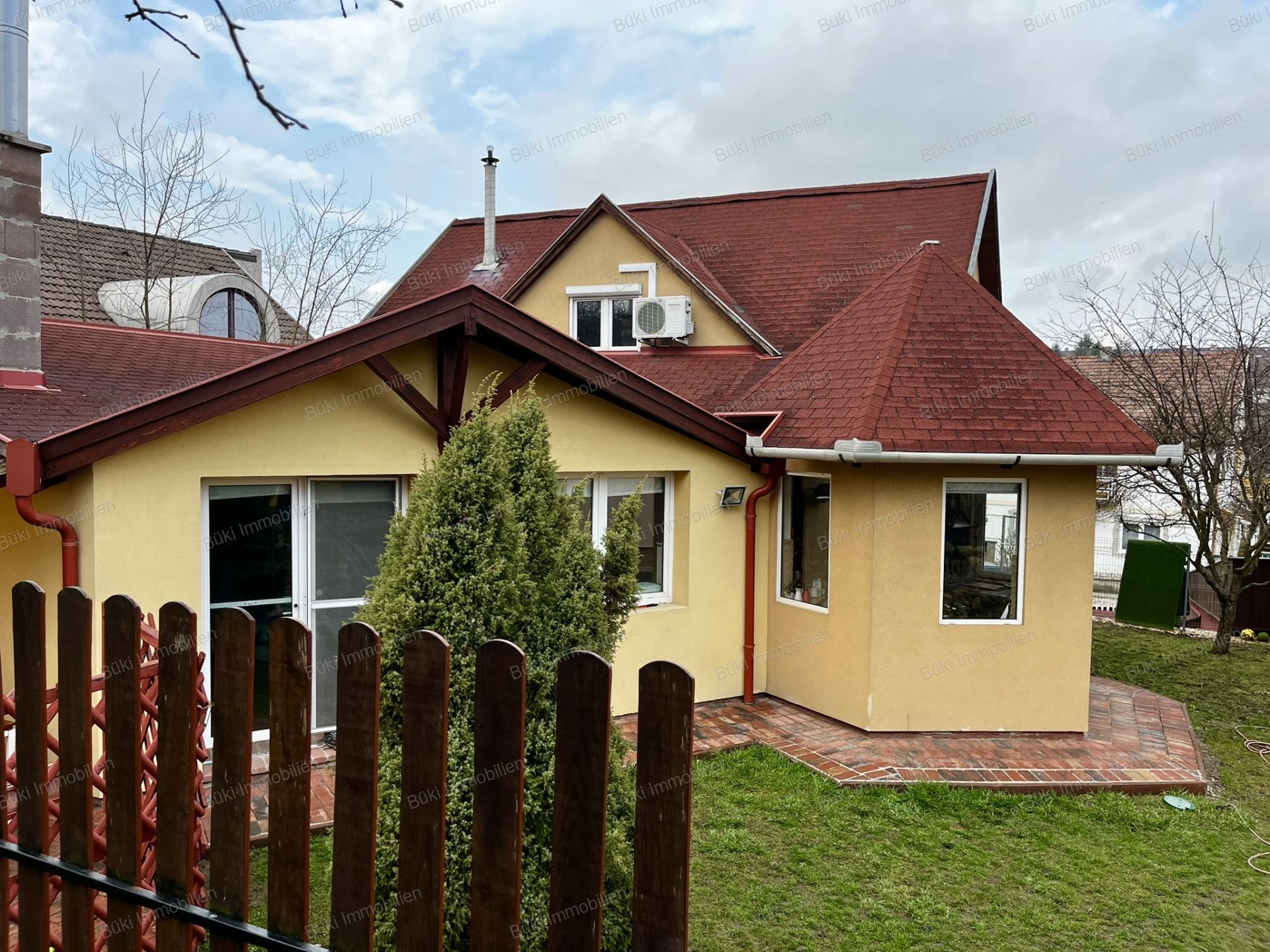 A ház gondozott kertje kifejezetten gyerekes családok számára ideális, hiszen a tágas udvar bőséges teret biztosít a szabadtéri játékhoz és pihenéshez. A domboldali fekvésnek köszönhetően gyönyörű kilátás nyílik a környező természetre. A csendes, nyugodt környezet ellenére a belváros könnyen elérhető, így a mindennapi élet kényelmesen szervezhető.