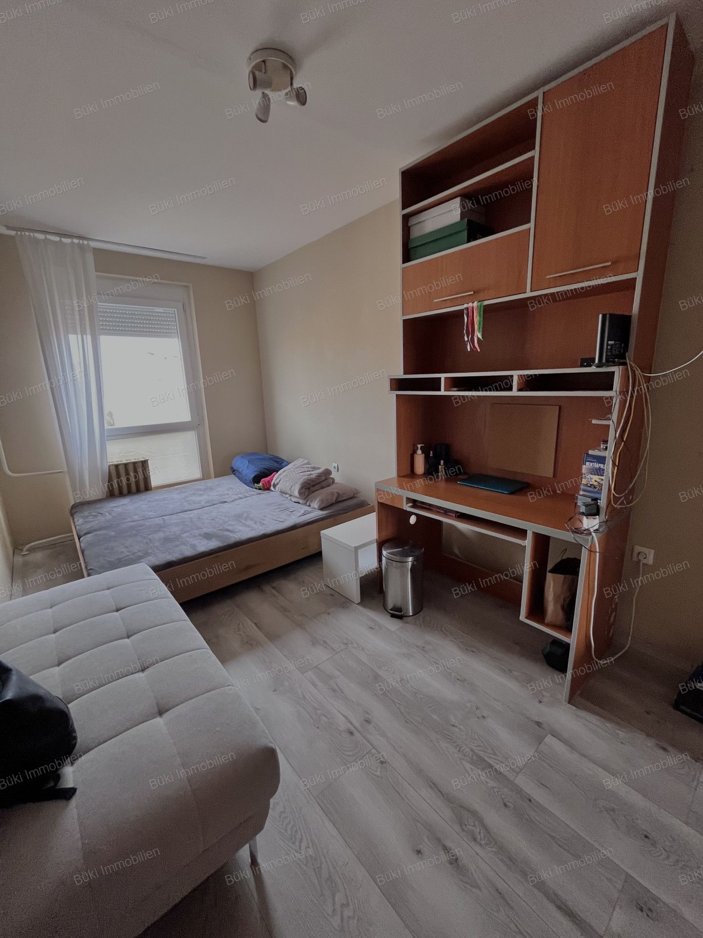 A teljes bútorzat az ingatlan árát képezi, így az új lakónak már csak a bőröndjét kell magával hoznia. Az ingatlan a 2 normál szobán kívül tartalmaz egy rejtett szobát is, mely egyből a nappali mellett helyezkedik el, így akár lehetőség van egy nagyobb amerikai konyha kialakítására is.