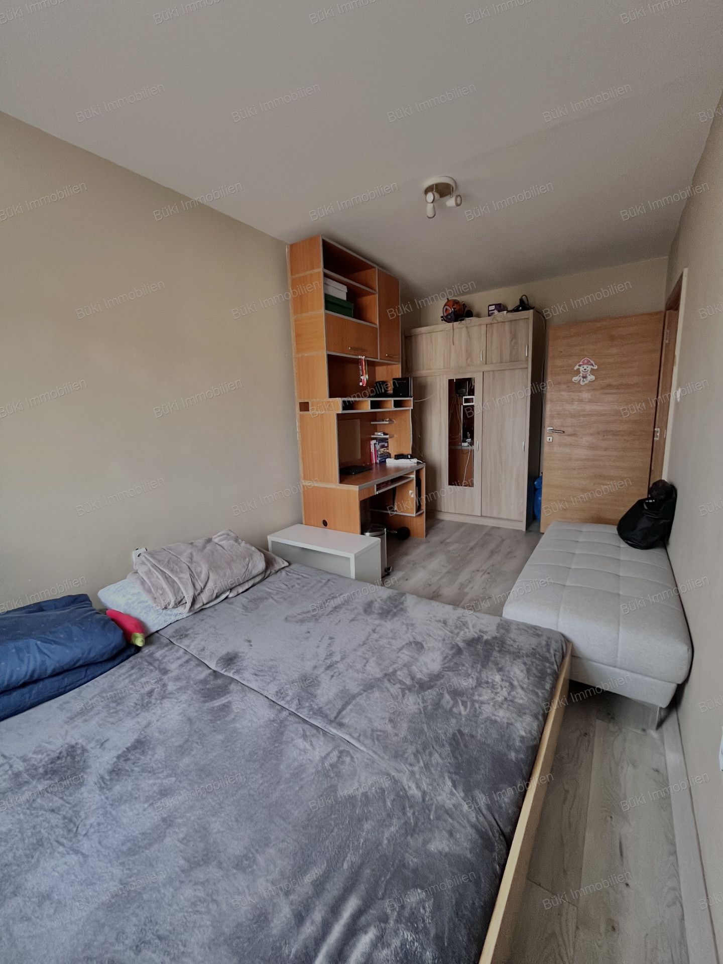 Az egyik hálószobából ötletes berendezéssel remek kis gyerekszobát alakíthatunk, így a lakás kényelmes otthonává válhat egy kisgyermekes családnak is.